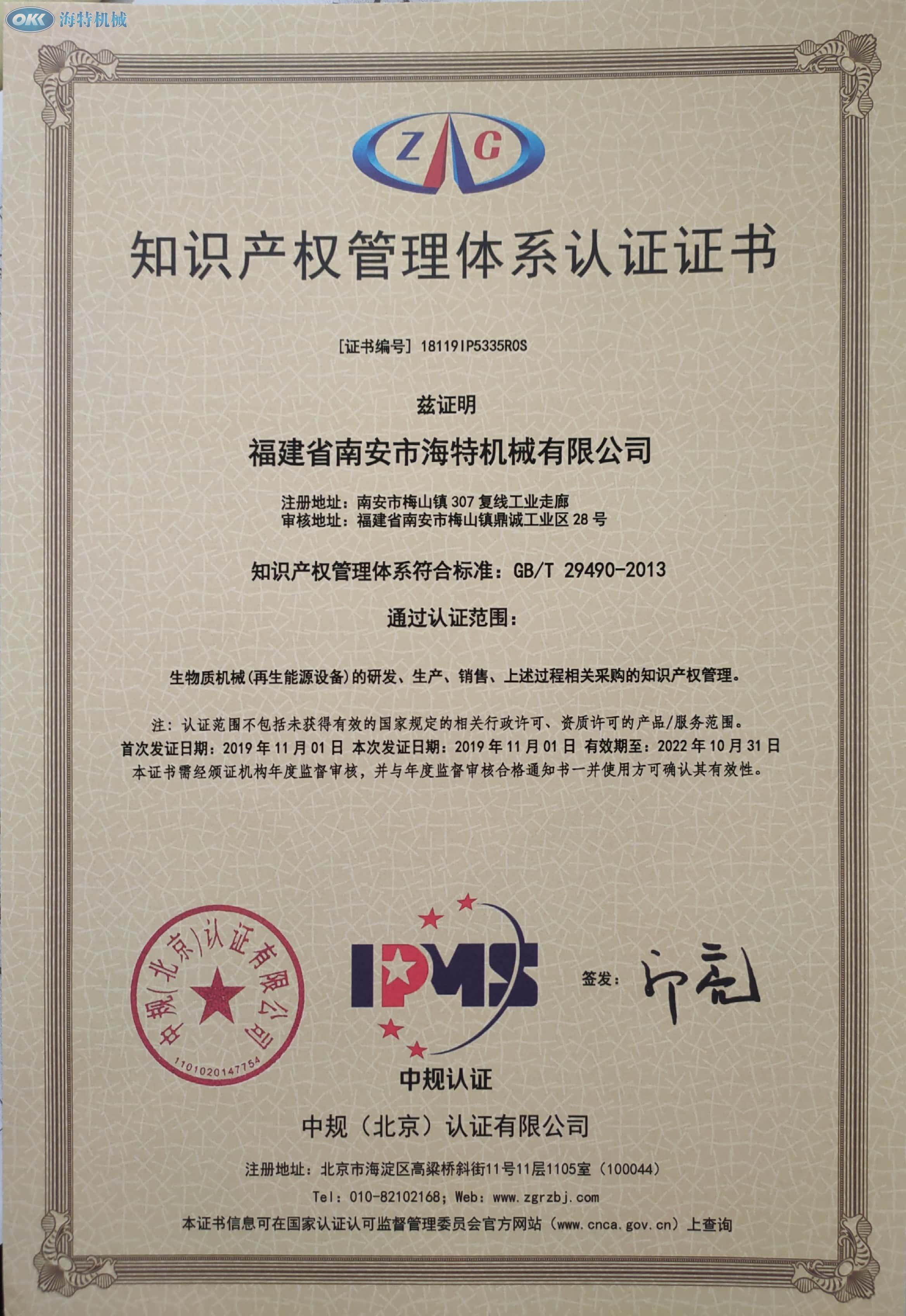 海特機(jī)械在自主研發(fā)的生物質(zhì)顆粒燃機(jī),生物質(zhì)顆粒造粒機(jī),纖維干粉攪拌設(shè)備,三回程烘干設(shè)備等機(jī)械設(shè)備上顯得顯著的成 績,至今天為止,共榮獲了10項(xiàng)發(fā)明專利,69項(xiàng)實(shí)用型專利,1項(xiàng)外觀專利,并取得知識(shí)產(chǎn)權(quán)管理體系認(rèn)證證書。